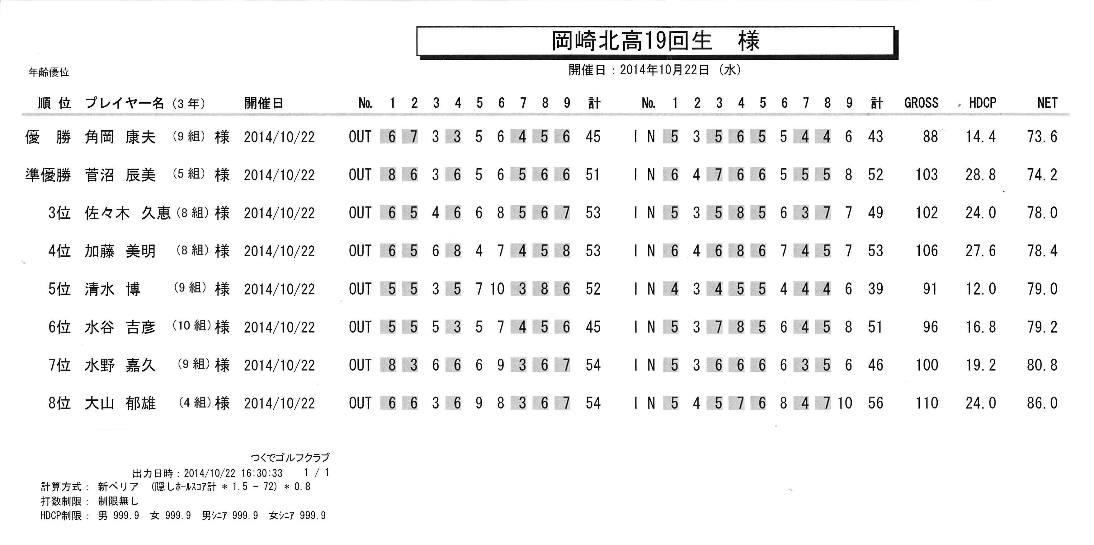 平成26年10月22日(水曜日)つくでゴルフクラブにて「岡崎北高19回生ゴルフコンペ」を開催しました。