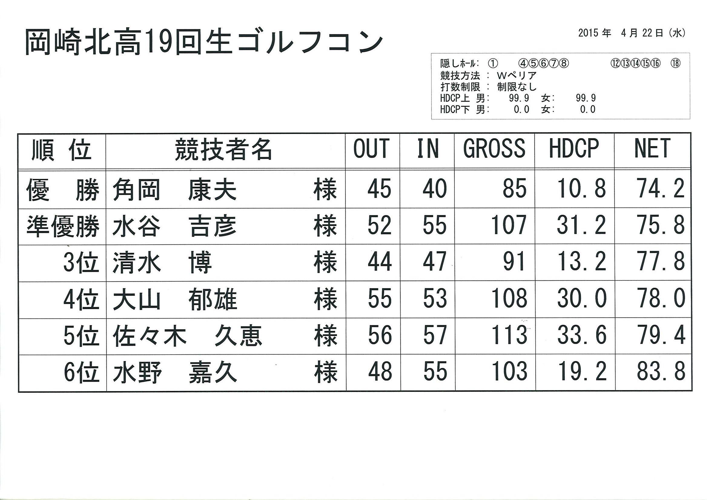 平成27年4月22日(水曜日)稲武OGMカントリークラブにて「岡崎北高19回生ゴルフコンペ」を開催しました。