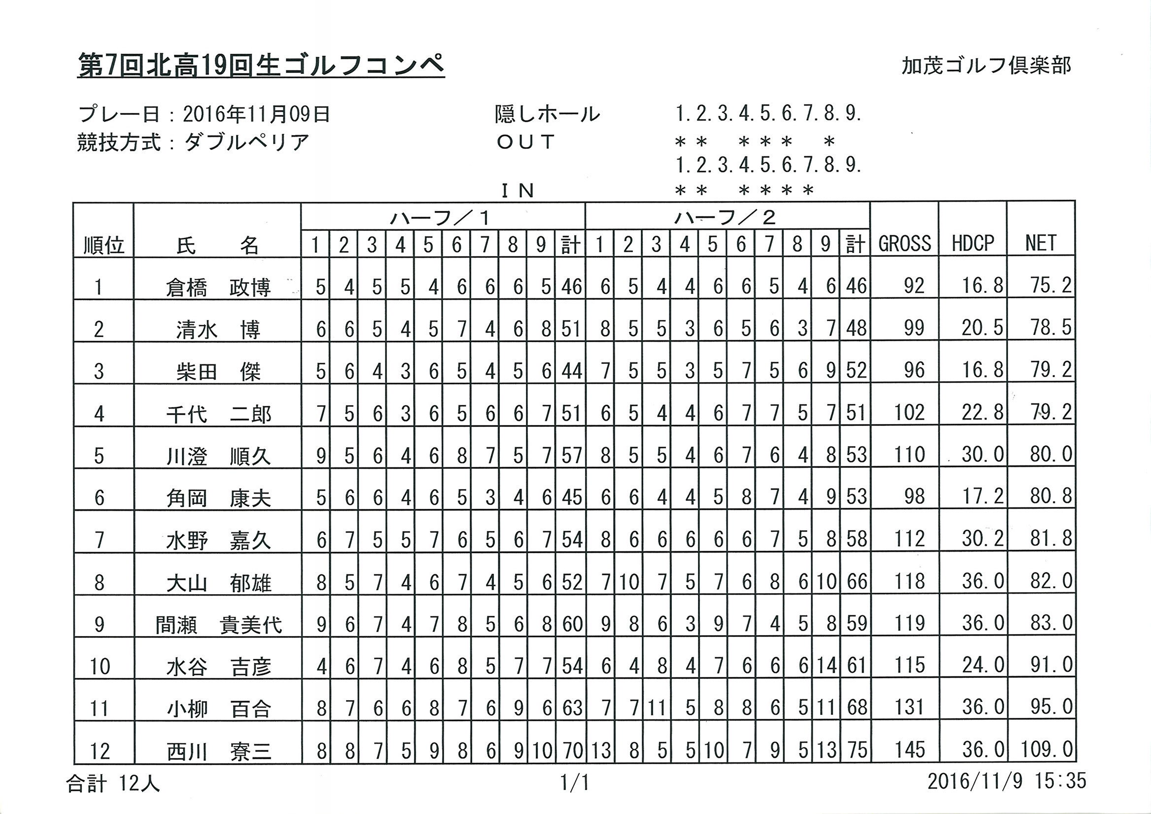 結果はグロス92で3組の倉橋政博君が優勝しました。